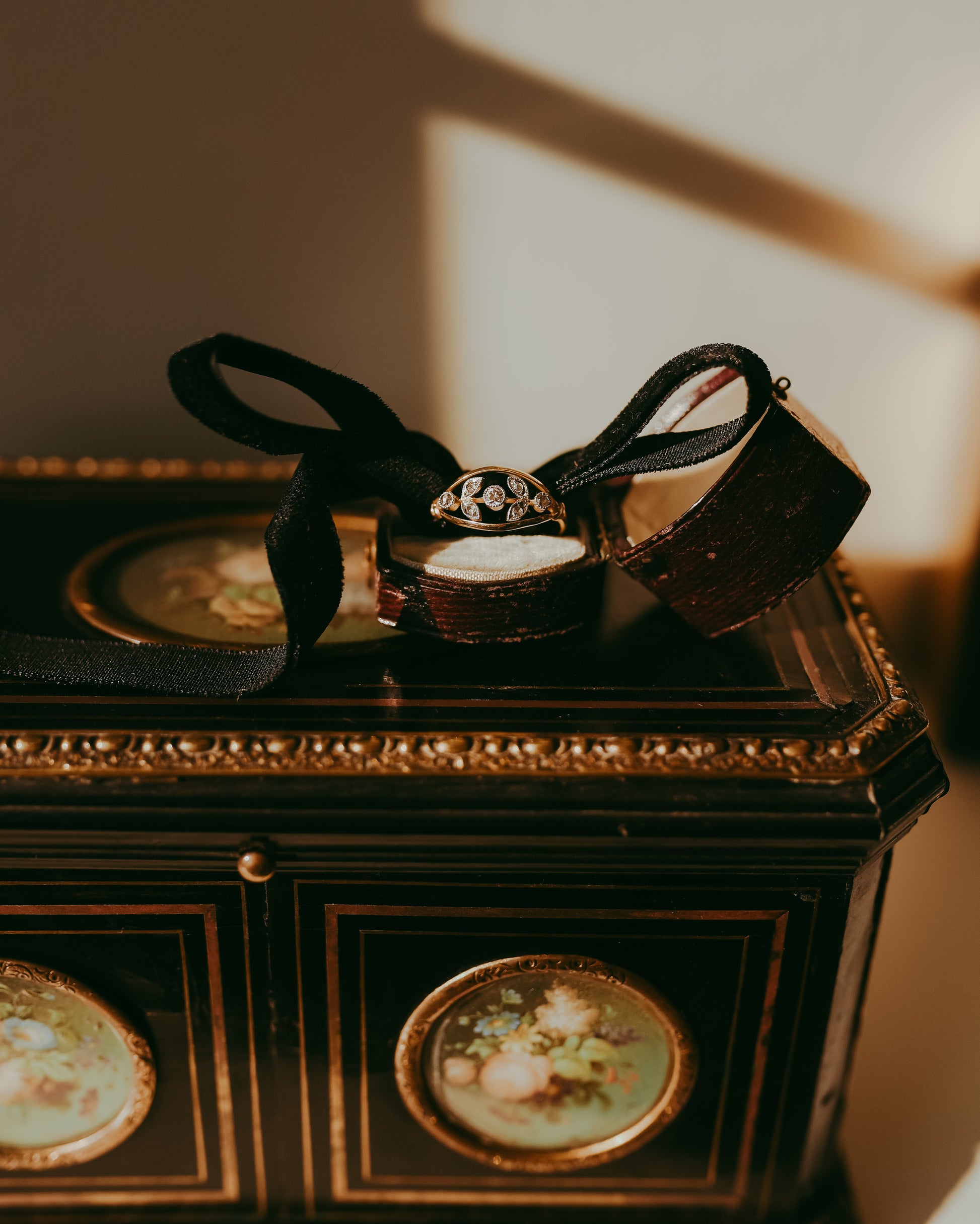 🖤 Rose-cut diamonds set throughout the leaves
