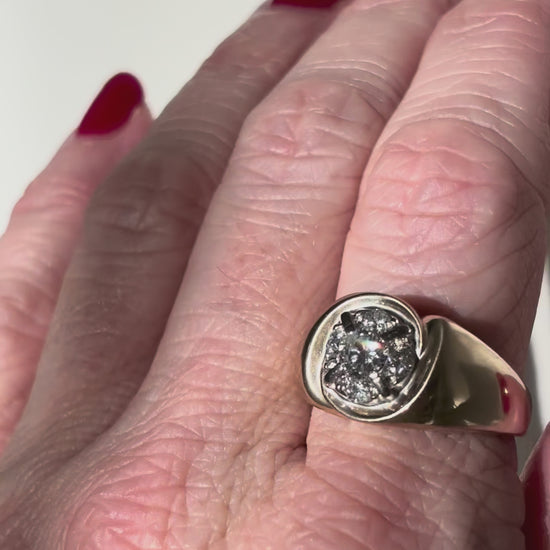 Mid-Century 10K Gold Diamond Statement Ring Daisy Ring Bold Ring | Vintage Gold Ring