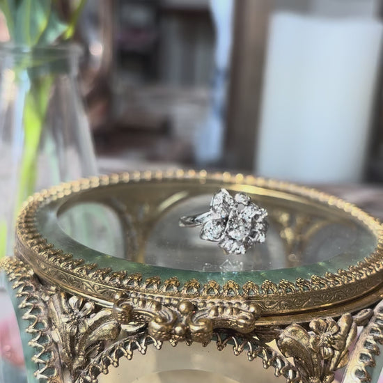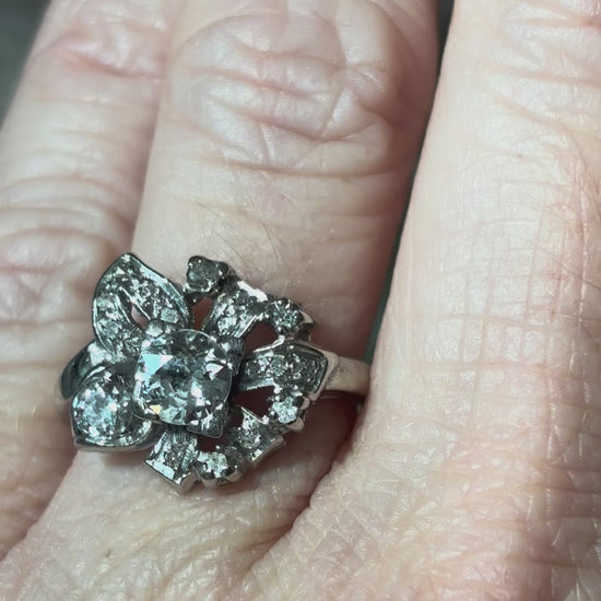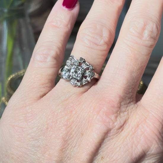 Floral Diamond Ring in 14K White Gold – Mid-Century 1950s