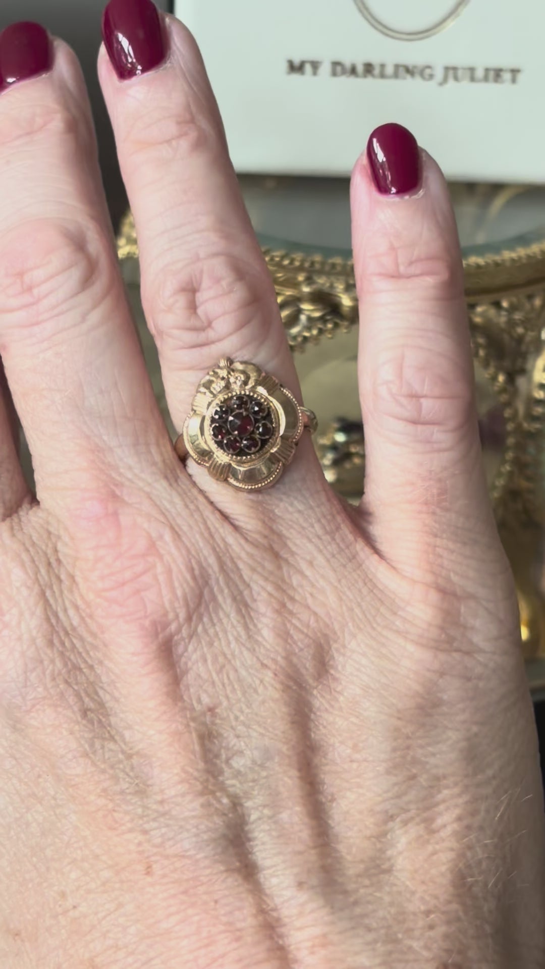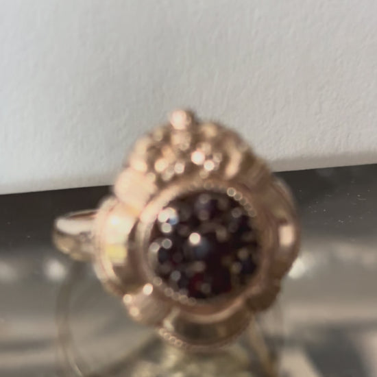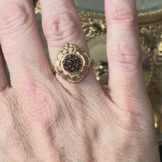 My Darling Juliet | Late Victorian 14K Gold Garnet Flower Ring