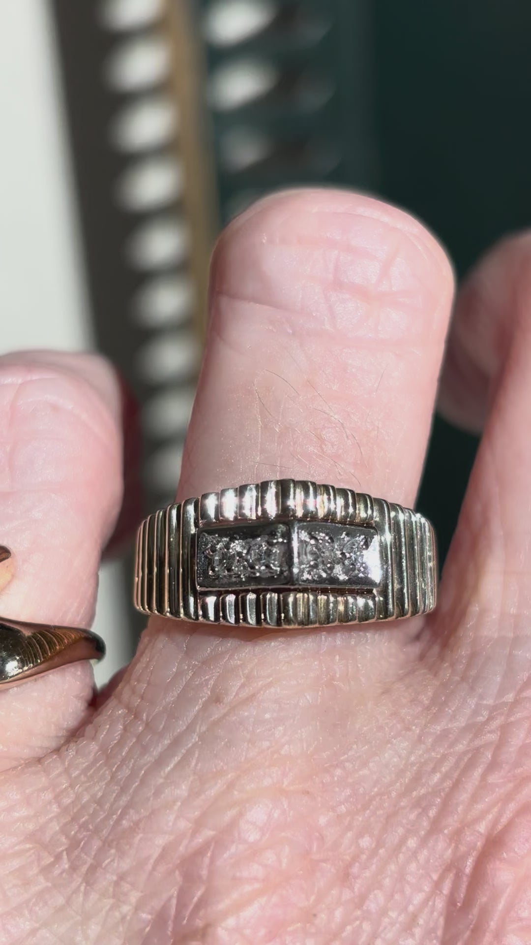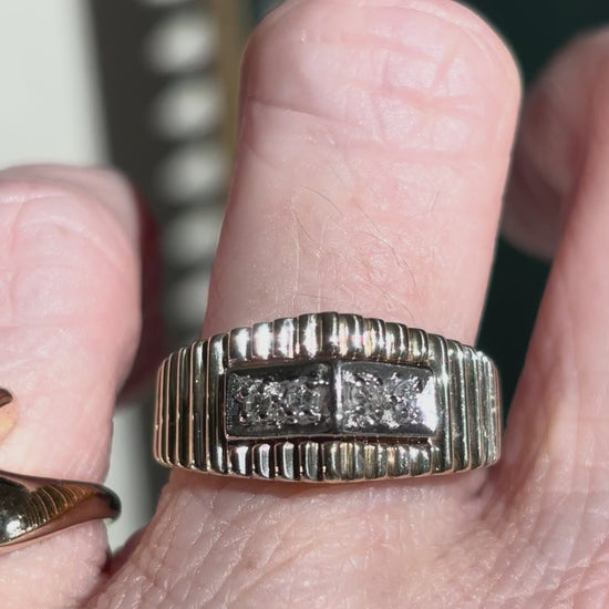 Vintage Retro 10K Gold Diamond Ring | Ridged Mid-Century Modern Design